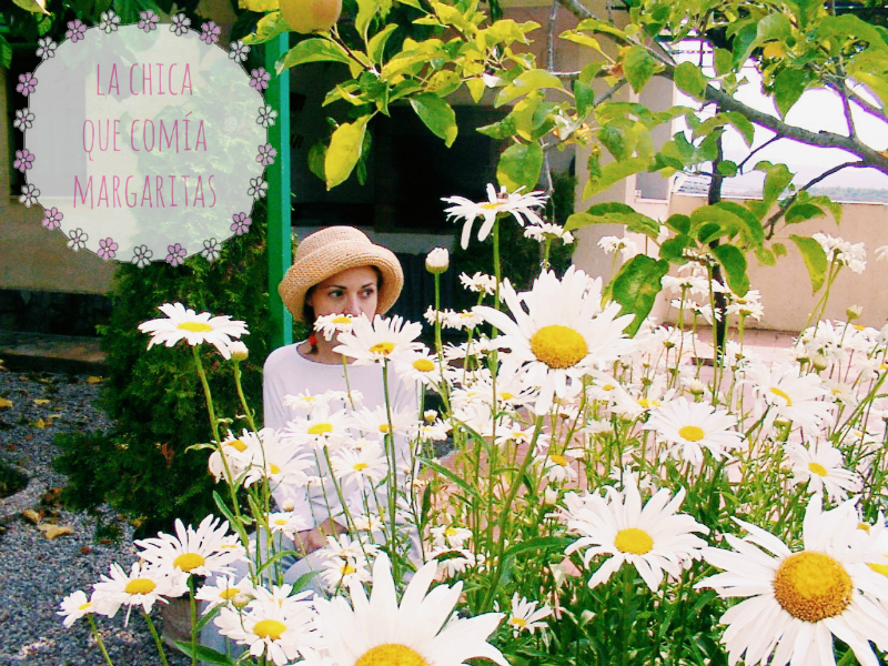 Fue una época extraña pero siempre que la evoco se me aromatiza el paladar de la memoria. Tenía veintipocos años e infinidad de proyectos. Era primavera. Recuerdo que sembré margaritas en el pequeño jardín de mi pequeña casa. “Margaritas salvajes” ponía en el sobrecillo de semillas y vaya si lo eran, crecieron de forma amazónica, tan altas y fuertes como las habichuelas mágicas. Fue una etapa de cambios radicales en mí. Me teñí el pelo de negro azabache, aireé y reorganicé el armario interno, escribí mucho, pensé poco y me empeñé en usar sombreros terribles. Fue una época dulce, ingrávida, circularmente feliz. Una etapa que se me amoldaba a la sonrisa como si estuviera hecha a mi medida. Quizá por eso, cuando hace unos años buscaba un título para un blog, esa etapa me vino como un rayo a la memoria. Y en especial, esta foto, en la que no tengo claro si soy yo quien parece comerse las margaritas o ellas a mí. 😉